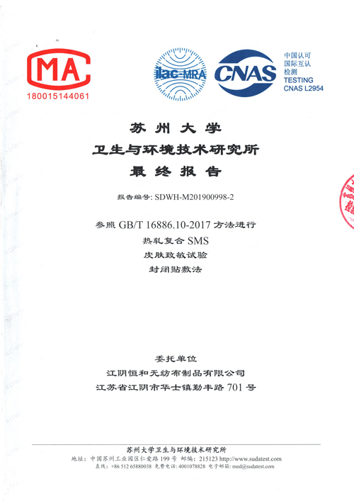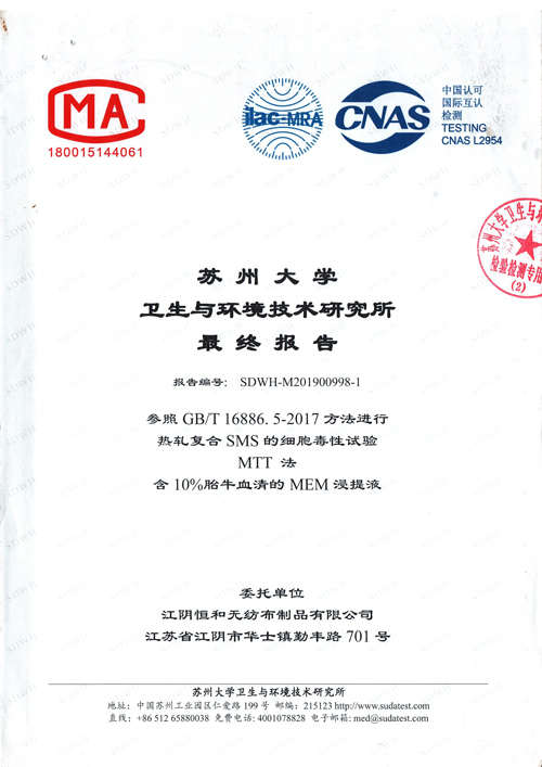 Product report of non-woven fabric